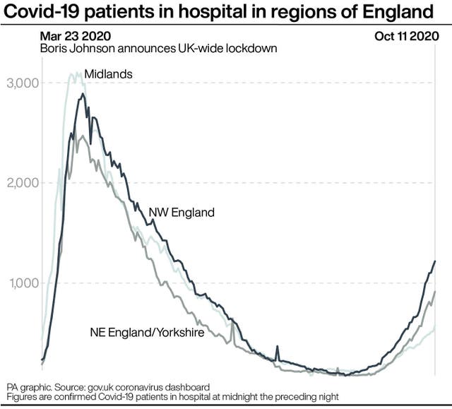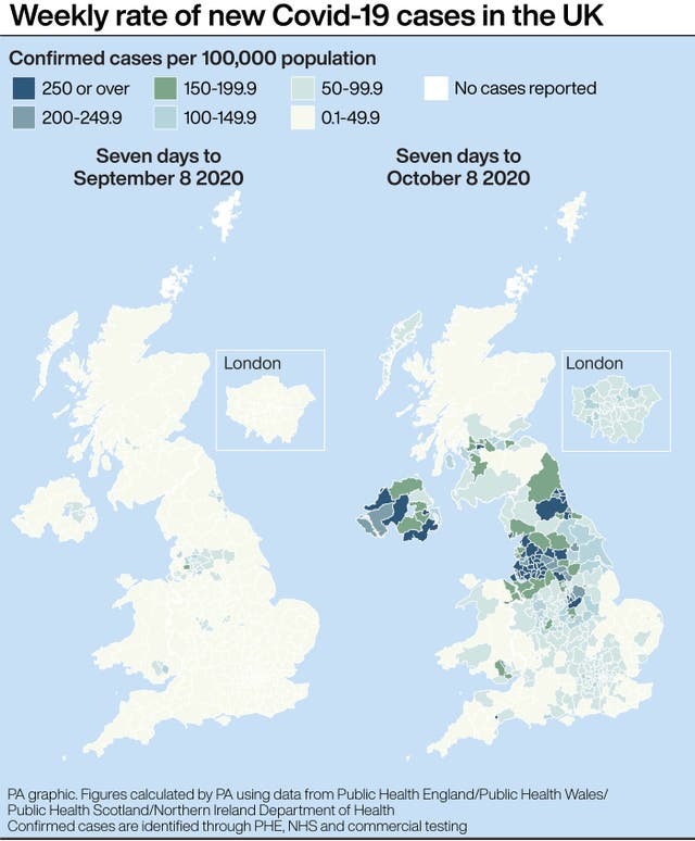Mr Johnson also faces difficulties at Westminster, with unrest on his own benches over measures such as the 10pm curfew, and Sir Keir Starmer’s Labour shifting towards stronger criticism although not – yet – outright opposition to the restrictions the Government has introduced.