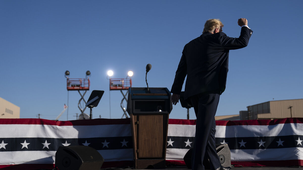 Mr Trump continued his campaign with stops in Arizona, in which he attempted to portray a bleak version of events should he lose to his Democratic challenger next week.