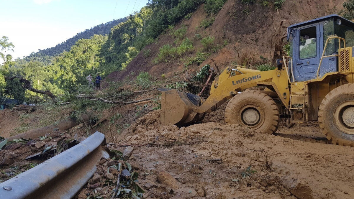 A bulldozer clears a road damaged by a landslide Picture: Bui Van Lanh/VNA via AP