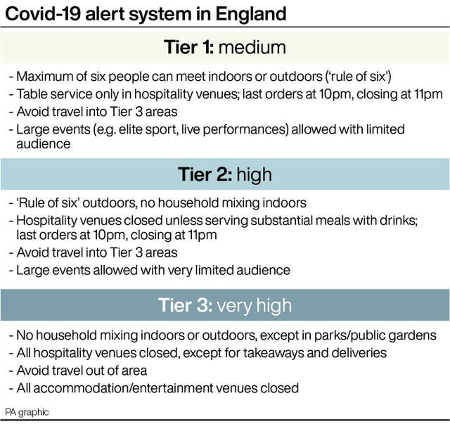 Areas moving to Tier 3 are: Greater London; south and west Essex including Basildon, Brentwood, Harlow, Epping Forest, Castle Point, Rochford, Malden, Braintree and Chelmsford along with Thurrock and Southend-on-Sea borough councils; and the south of Hertfordshire including Broxbourne, Hertsmere, Watford and the Three Rivers local authority.