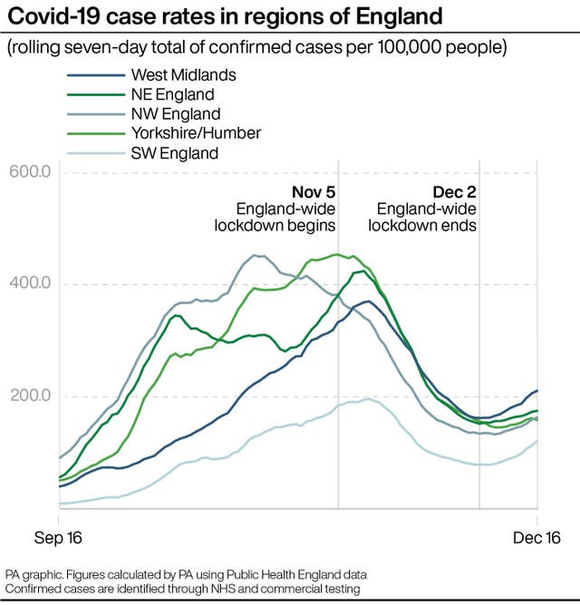 Mr Vallance indicated a lockdown may be needed in wider areas of England, particularly as Christmas mixing may result in an increased spread of cases.