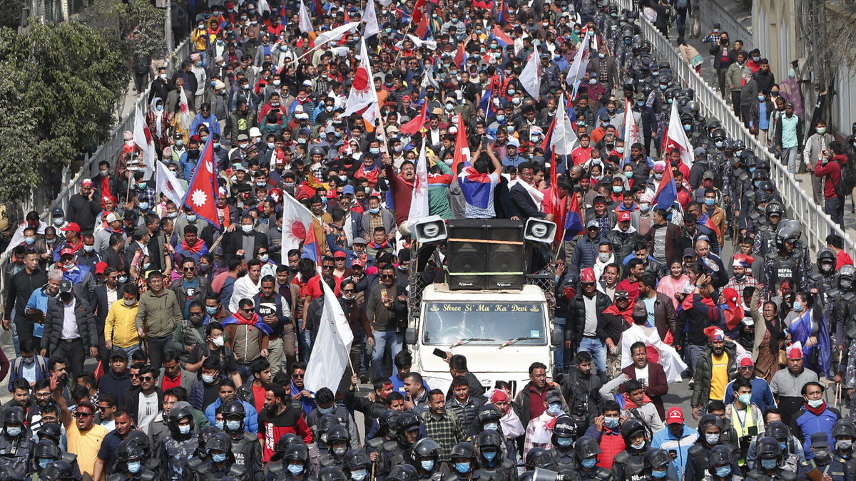 Thousands of anti-government protesters threw confetti and chanted slogans in Nepal’s capital as they celebrated parliament’s reinstatement by the Supreme Court.