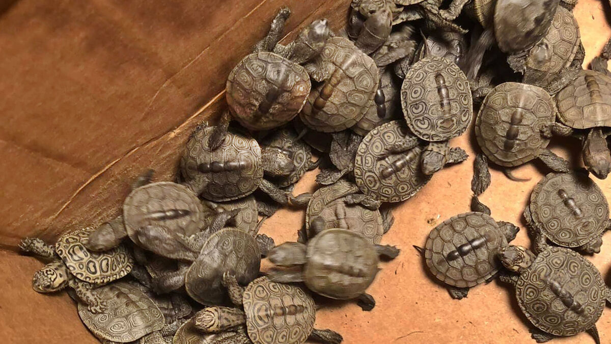 Hundreds of diamondback terrapin hatchlings have been rescued from underground storm drains along the New Jersey shore.