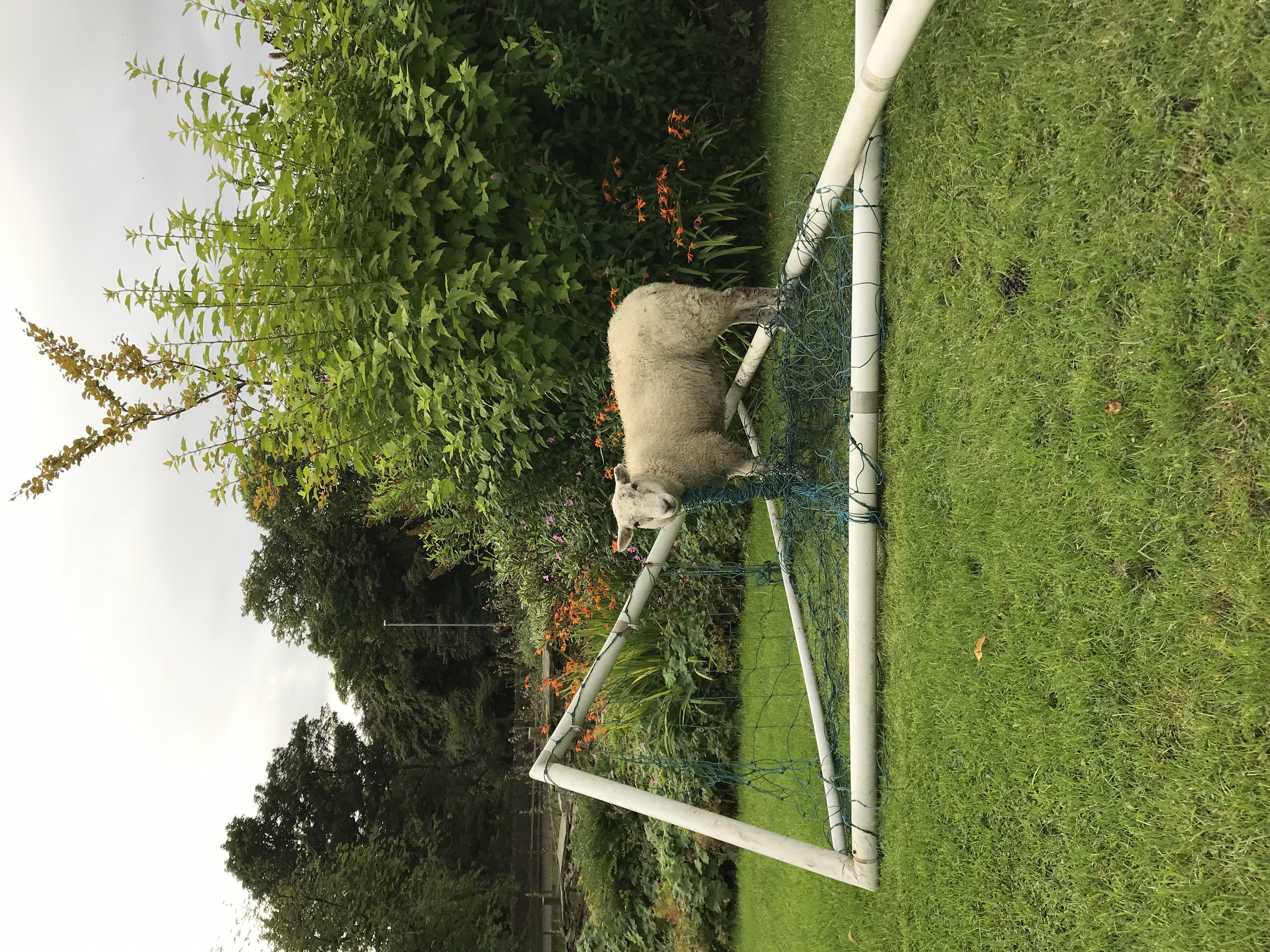 A sheep stuck in a football net had to be rescued by an animal charity in the UK.