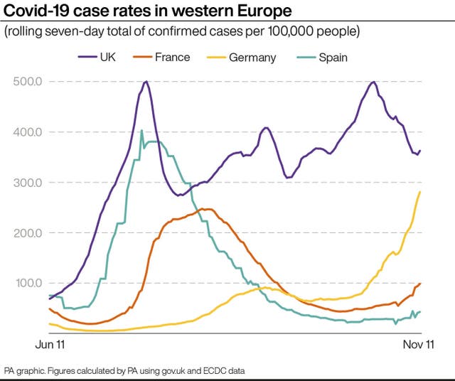 In comparison, the rate is at 289 in neighbouring Germany, which has already sounded the alarm over the rising numbers.