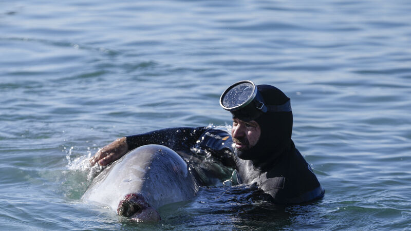 The animal is a young Cuvier’s beaked whale, or Ziphius cavirostris, according to Arion, a research organisation that provides veterinary care for stranded cetaceans.