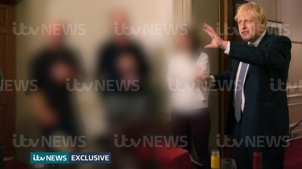 ITV News published four images on Monday showing the UK Prime Minister with a drink in his hand while standing behind a table littered with wine bottles and food.