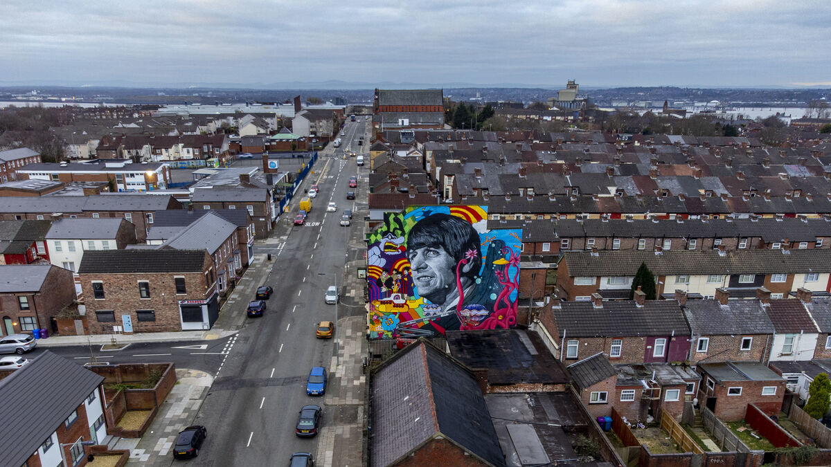 A mural of Ringo Starr, commissioned by Liverpool artist John Culshaw, is unveiled on the gable end of the Empress Pub on Admiral Street in Liverpool. Picture: Peter Byrne/PA