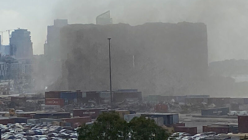 Part of Beirut’s blast-damaged port silos collapses