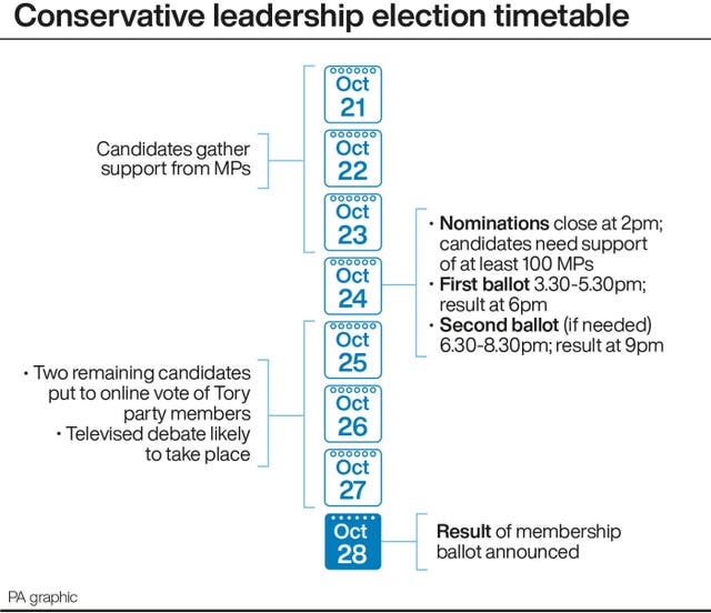 Commons Leader Penny Mordaunt is the only candidate who has officially declared she is running, but former chancellor Rishi Sunak is also expected to launch a challenge.