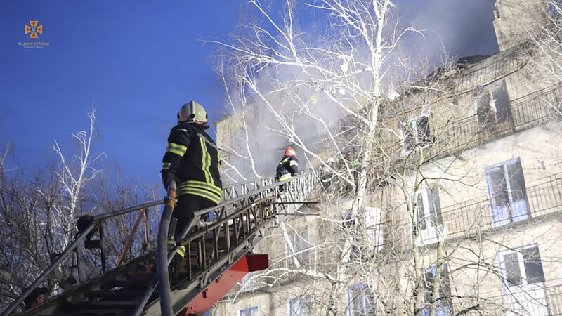 Ukraine’s president posted a video showing what he said was a Russian missile slamming into an apartment building in the southeastern city of Zaporizhzhia, after Russia launched exploding drones that killed at least four people at a student dormitory near Kyiv before dawn.
