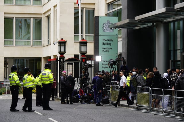 Police officers and members of the media are awaiting Harry’s arrival at the Rolls Buildings in central London.