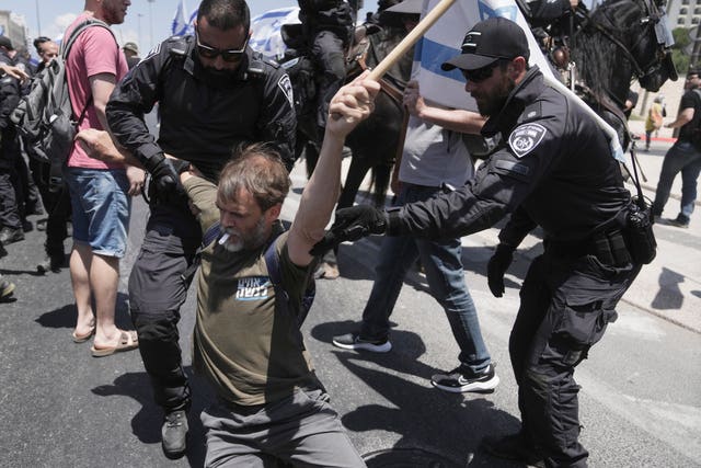 Officers arrested several others who had obstructed a highway next to the central city of Modiin. Demonstrators blocked a main highway in Haifa with a large banner reading âTogether we will be victoriousâ, snarling traffic along the beachfront.