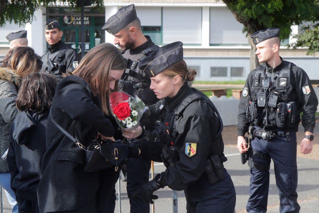 All French schools held a moment of silence on Monday in homage to the teacher who was fatally stabbed in Friday’s attack.