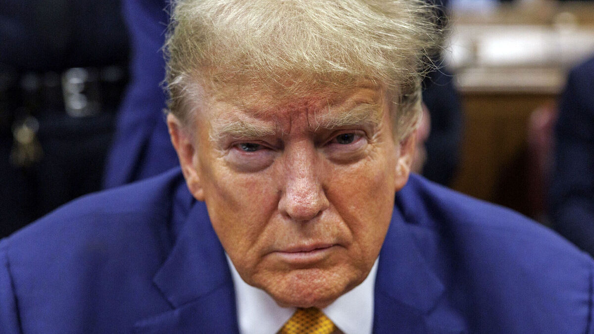 Former President Donald Trump sits at the defense table in Manhattan criminal court, Tuesday, May 7, 2024, in New York. (Sarah Yenesel/Pool Photo via AP)