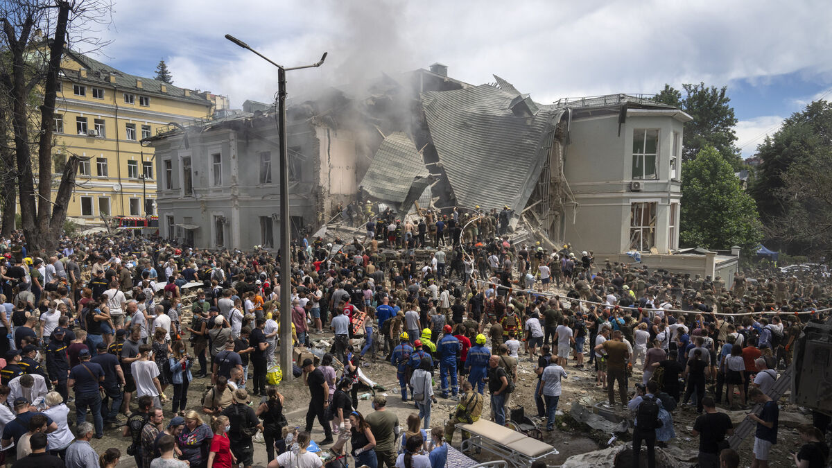 At the Okhmatdyt children’s hospital in Kyiv, rescuers are searching for people under the rubble of a partially collapsed, two-storey wing of the facility.