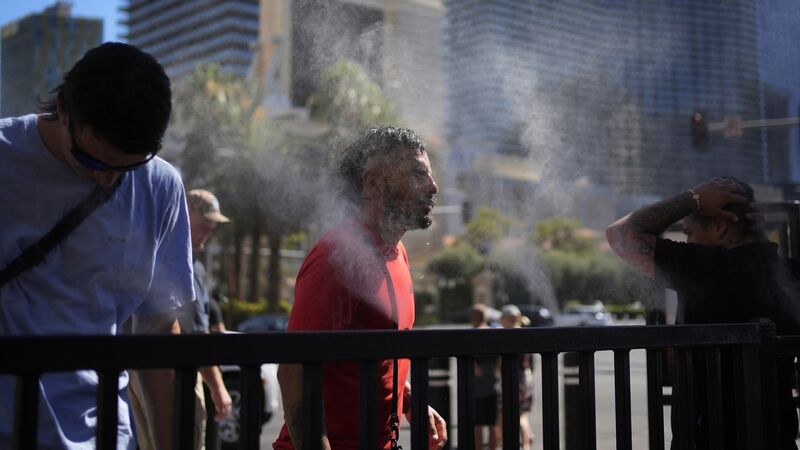 People cool off in misters along the Las Vegas Strip (John Locher/AP)
