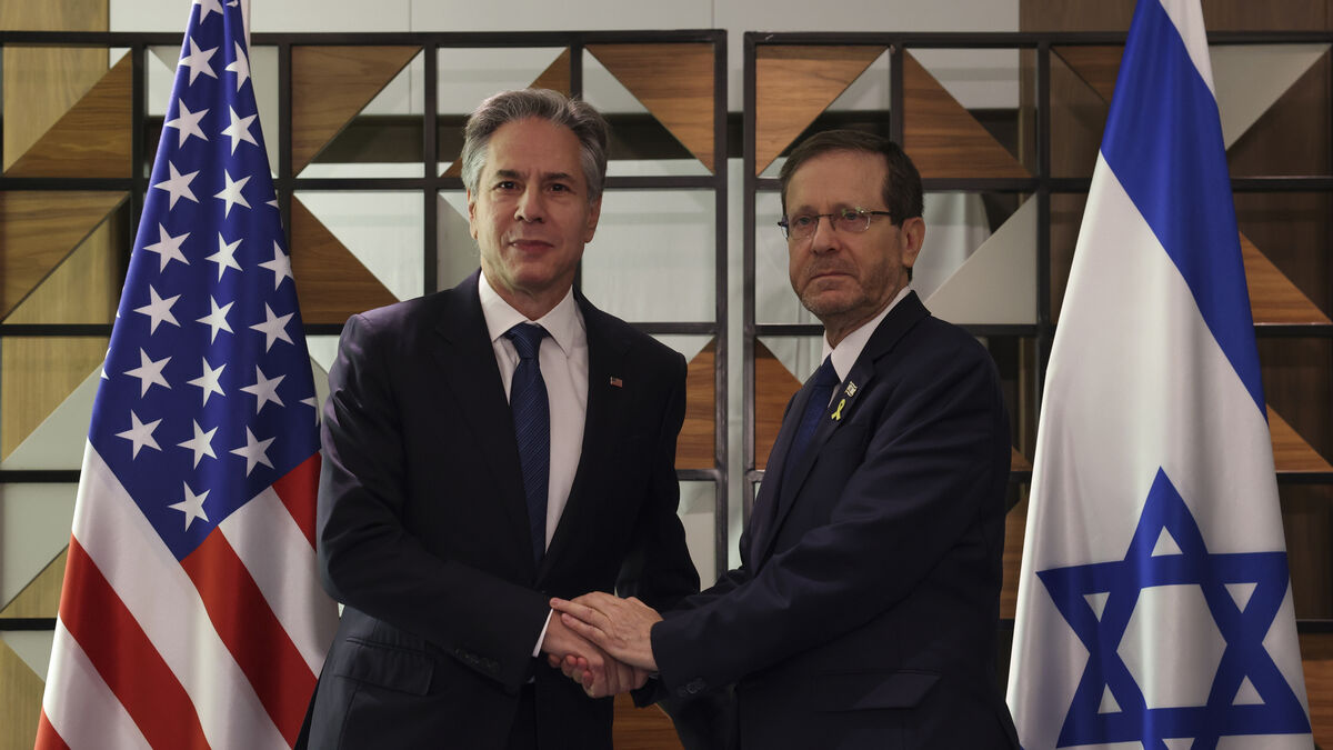 Antony Blinken meets with Israel’s President Isaac Herzog, in Tel Aviv Picture: Kevin Mohatt/Pool Photo via AP