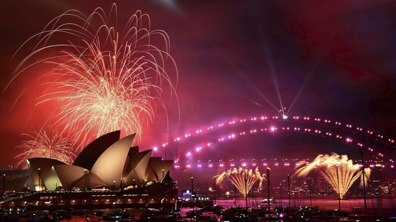 The 9pm fireworks are seen during New Year's Eve celebrations in Sydney, Australia. Picture: Bianca De Marchi/AAP Image via AP