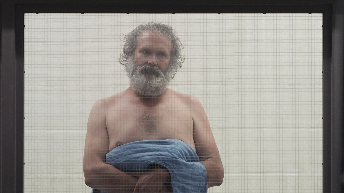 Jimmy Wayne Carwyle, 48, appeared shirtless and wrapped in a blanket when he appeared behind glass in a custody area of a Los Angeles courtroom. The Mississippi man did not enter a plea, or speak at all.