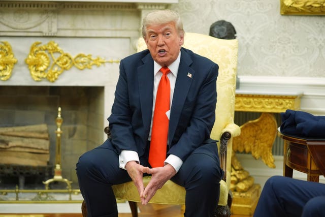 President Donald Trump speaks during a news conference with Elon Musk in the Oval Office of the White House on Friday (Evan Vucci/AP)