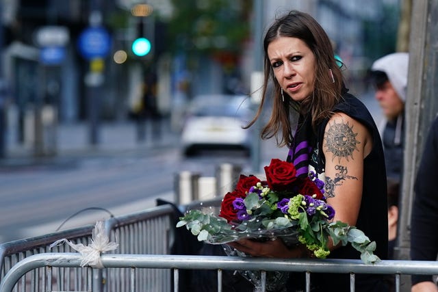 Floral tributes left in Broad Street in Birmingham in memory of Black Sabbath frontman Ozzy Osbourne (Joe Giddens/PA)
