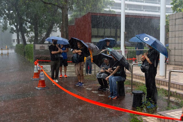 Dozens of people waited in the rain on Monday for a seat in the main courtroom to see Mr Lai.