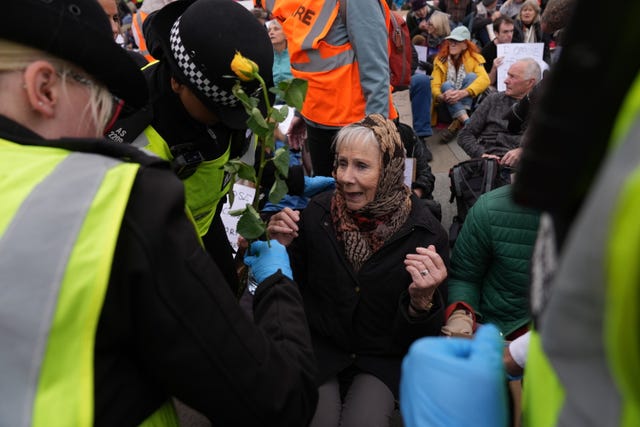But Kerry Moscogiuri, director of campaigns at human rights group Amnesty International UK, said: “Arresting hundreds of people for peacefully sitting down and holding these signs is not the job of police.