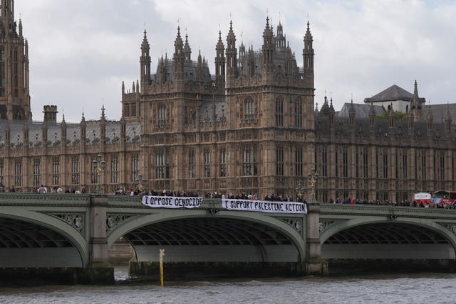 Protesters unfurled a banner on Westminster Bridge near the Houses of Parliament (Stefan Rousseau/PA)