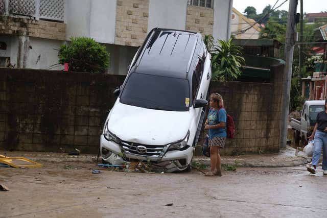 A damaged vehicle seen after flooding caused by Typhoon Kalmaegi (Jacqueline Hernandez/AP)