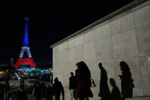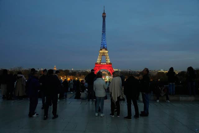 The Eiffel Tower is to be lit in the colours of the French flag after nightfall. The French football federation will observe a minute of silence and other tributes at France’s World Cup qualifier against Ukraine at the Parc des Princes.