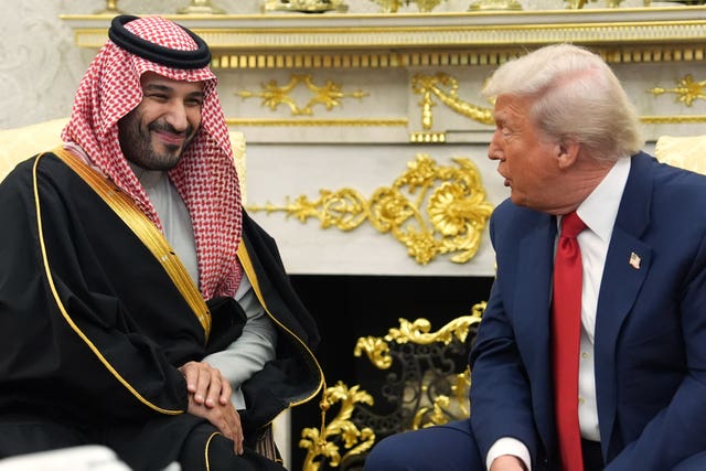 “We have a (sic) extremely respected man in the Oval Office today,” Mr Trump said, calling the prince “a friend of mine for a very long time”.
