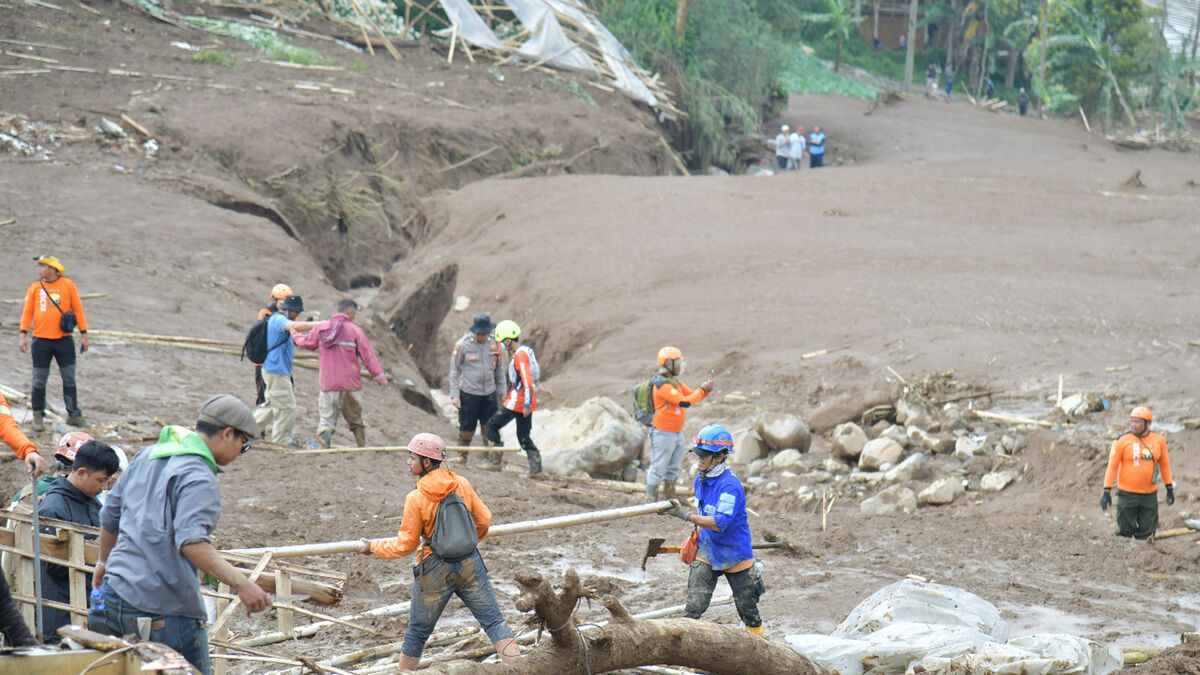 Indonesian rescuers have struggled with mounds of mud, debris and water‑soaked ground as they search for dozens missing after a landslide triggered by torrential rain on the country’s main island of Java killed at least 11 people.