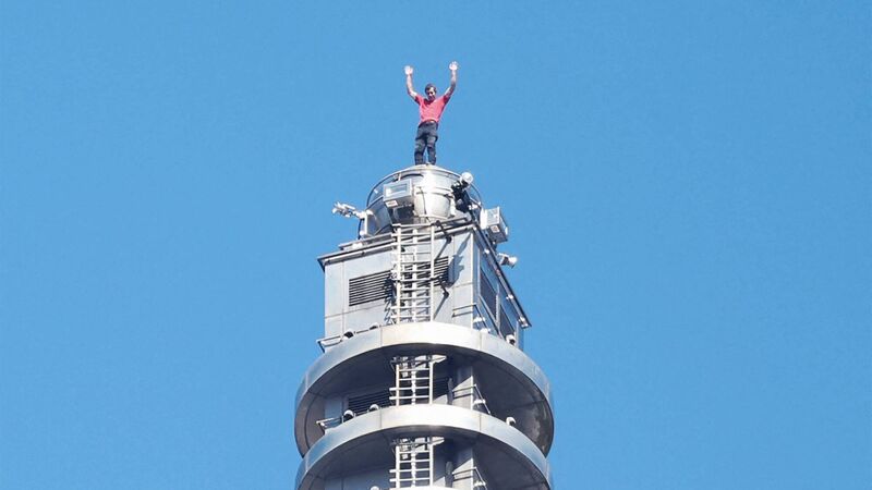 The building has 101 floors, with the hardest part being the 64 floors comprising the middle section — the “bamboo boxes” that give the building its signature look. Divided into eight, each segment has eight floors of steep, overhanging climbing followed by balconies, where he took short rests as he made his way upward.