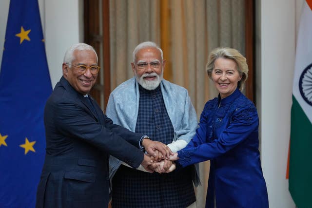 Trade between India and the EU stood at 136.5 billion dollars (£99 billion) in 2024 to 2025. The two sides hope to increase that to about 200 billion dollars (£145 billion) by 2030, Indian officials said.