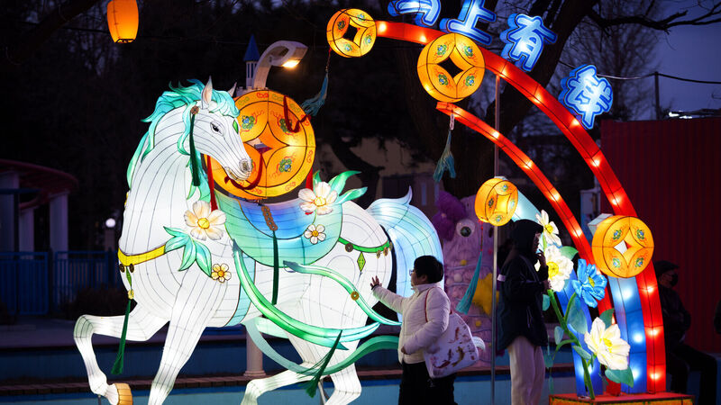 Visitors walk past an illuminated horse lantern display ahead of Lunar New Year celebrations at an amusement park on the outskirts of Beijing Picture: Vincent Thian/AP