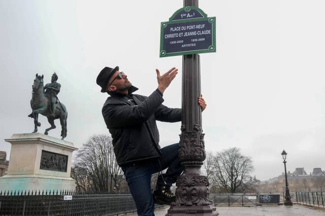 The installation is a nod to a Paris legend: the late artistic duo Christo and Jeanne-Claude who in 1985 wrapped Pont Neuf – and its streetlamps – in a pale golden fabric.
