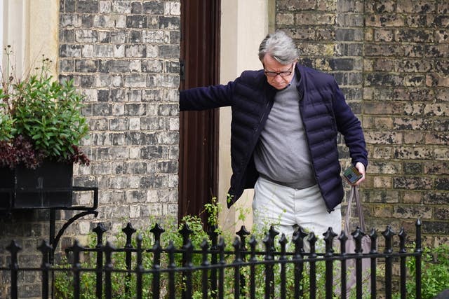 Peter Mandelson outside his home in north west London. The Government still plans to release documents about the peer’s appointment as US ambassador despite his arrest on Monday, a minister said Picture: James Manning/PA
