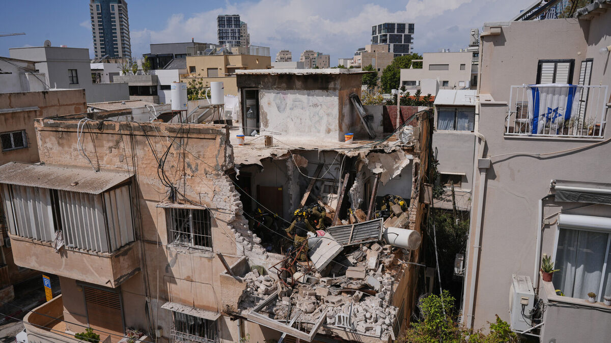 Israeli Home Front Command officers inspect an apartment building struck by an Iranian missile in Tel Aviv, Israel on Sunday (Maya Levin/AP)