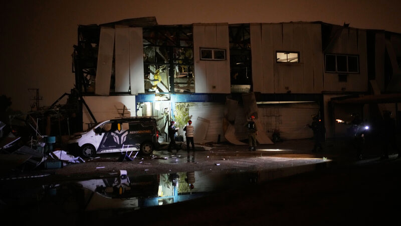 Israeli security forces and rescue teams inspect a site struck by an Iranian missile in Petah Tikva on Thursday. Picture: Ohad Zwigenberg/AP