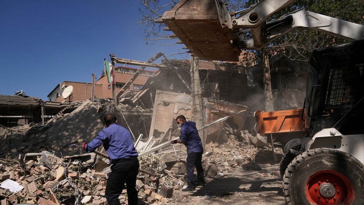 Workers remove debris at Tehran's Sharif University of Technology complex that Iranian authorities say was hit early Monday by a U.S.-Israeli strike, in Tehran, Iran, Monday, April 6, 2026. (AP Photo/Francisco Seco)