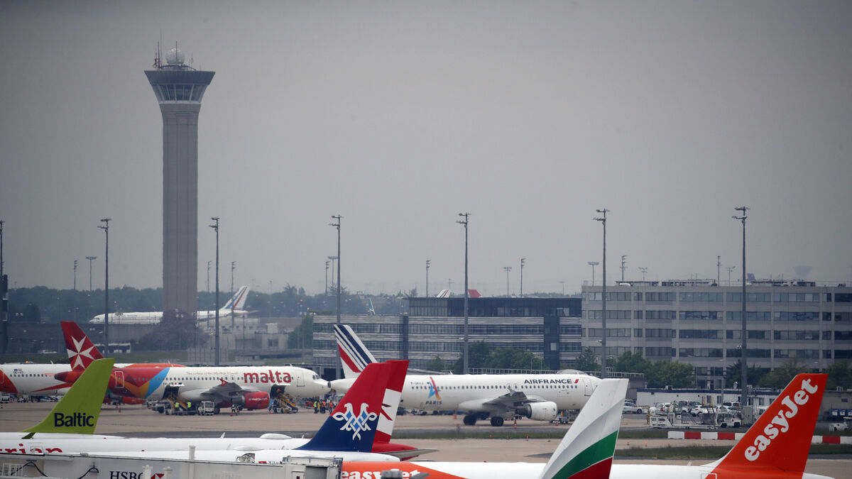 Planes are parked on the tarmac at Paris Charles de Gaulle airport